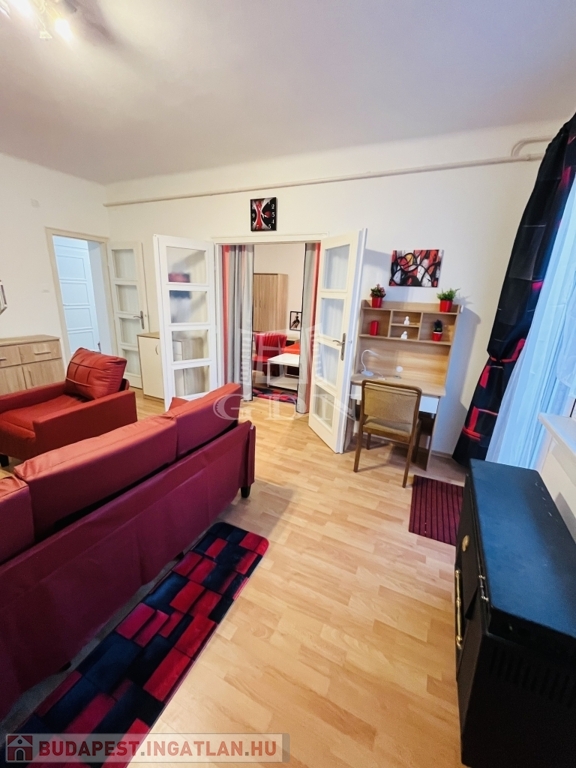 A világos, utcai nézetű lakás barátságos és otthonos hangulatot áraszt.