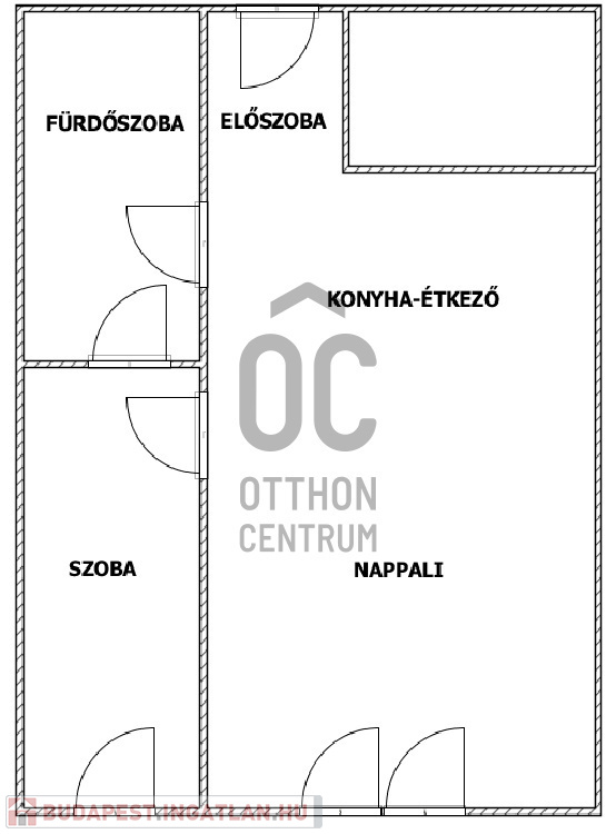-Nappali–étkező–konyha egy légtérben + külön hálószoba