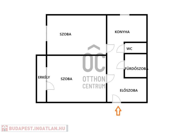 - 2 hálószoba, konyha, fürdőszoba külön WC, előszoba és közlekedő elosztású