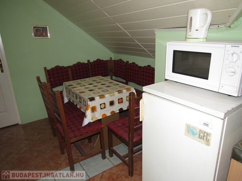Az emeleten található 50 m2-es, 1 szobás apartman 3 ággyal és 1 pótággyal rendelkezik. Saját fürdõszoba, Wc, konyhasarok és étkezõsarokkal.