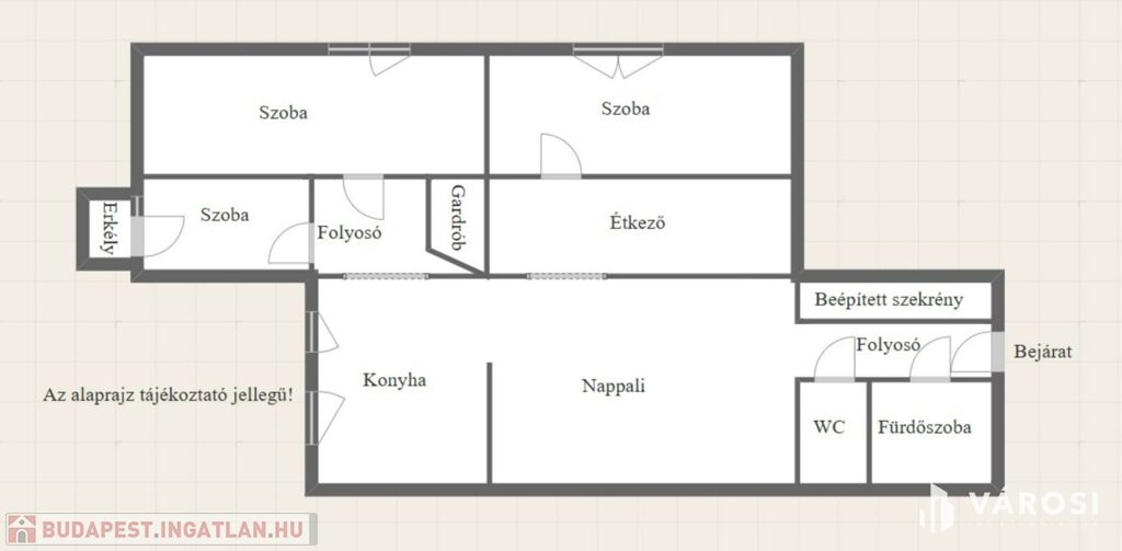 - 3 tágas szoba + 1 nappali + 1 étkező, a szobák külön nyílnak