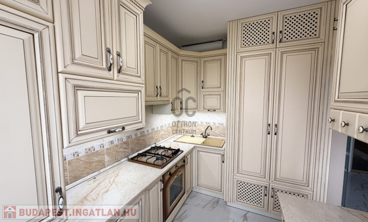 •Elrendezés: nappali (23m2), hálószoba (13m2), gardrób (6,5m2), külön étkező, konyha, fürdőszoba, külön WC