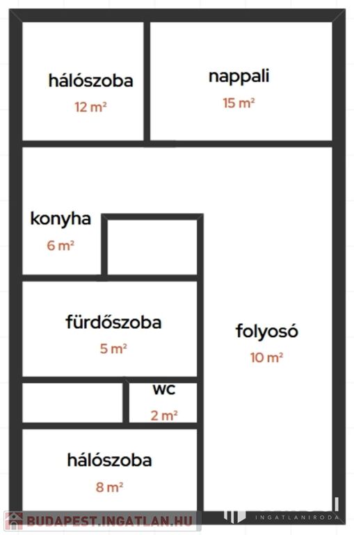 - **Elrendezés:** 2 hálószoba, 1 tágas nappali, külön fürdőszoba és WC