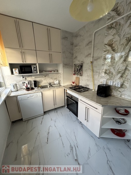 A lakás teljesen bútorozott és gépesített. A konyha modern beépített bútorral, valamint az alábbi készülékekkel felszerelt: