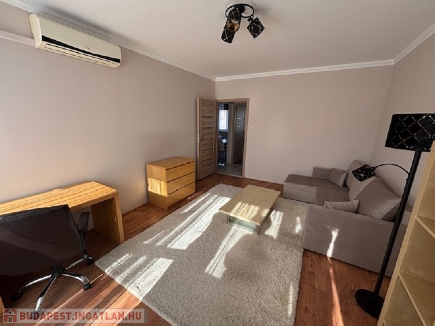 A lakás bútorozott, gépesített, mosogatógép, mosógép is van. A szobák külön nyílnak, klímával felszerelve. Fürdőszoba zuhanyfülkés, wc külön van. Központi mért fűtésű, alacsony rezsijű. Műanyag nyílászárók redőnnyel, szúnyoghálóval felszereltek. Nagyerkély tartozik hozzá. Lift nincs. Közös költség 15.000 Ft.