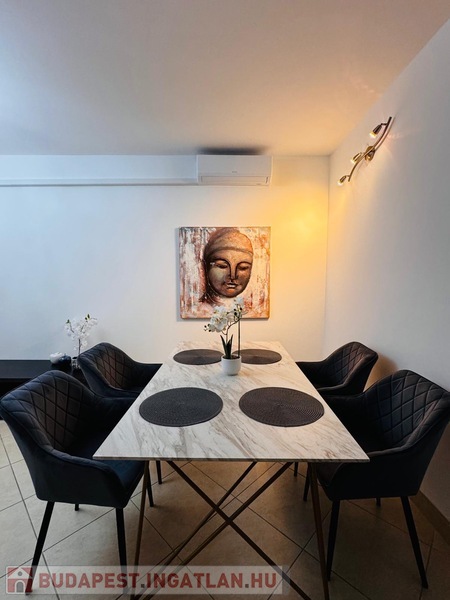 - Teljes bútorzat + modern gépesítés (mosógép, hûtõ, mikró, sütõ, tûzhely, elszívó, étkészlet)