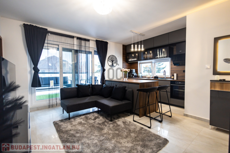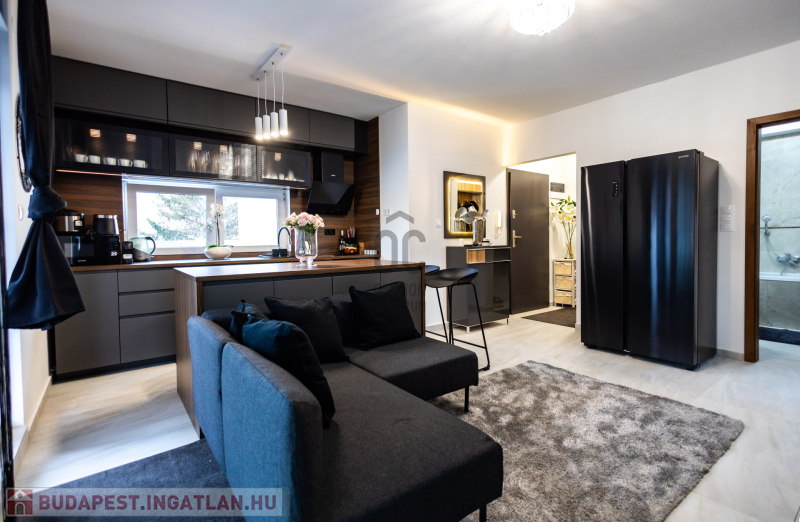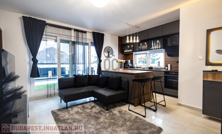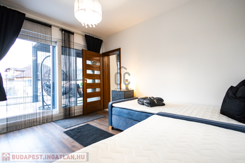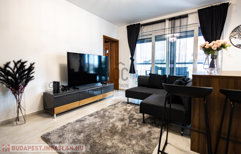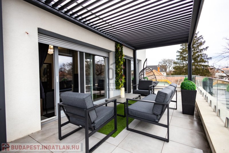 A lakás prémium minőségű anyagokkal, igényes belsőépítészeti megoldásokkal került kialakításra. Klimatizált, korszerű gépészettel felszerelt, energiahatékony, így alacsony rezsiköltséggel fenntartható. A modern konyha beépített gépekkel ellátott, a burkolatok és szaniterek magas minőséget képviselnek. Teljes bútorzattal kiadó a lakásban padlófűtés, mennyezet hűtés-fűtés található. A teraszon pergola, az ablakokon elektromos redőnyök, és elektromos zip függöny van felszerelve.A lakáshoz tartozik egy önálló,zárt garázs ,a társasház udvarán.