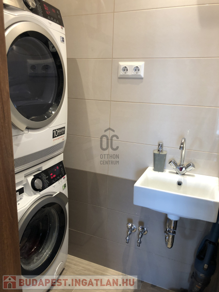 A fürdőszoba szállodai színvonalú: exkluzív burkolatok, magas minőségű szaniterek, sarokkád és külön zuhanyzó biztosítja a tökéletes kényelmet. Különálló WC és praktikus mosókonyha is található a lakásban.