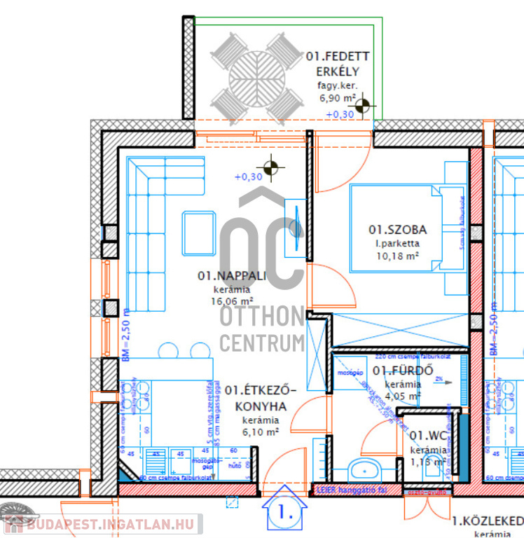 • 37,52 m² hasznos alapterület + 6,9 m² fedett terasz
