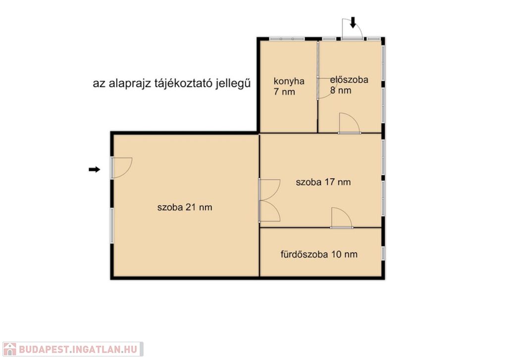 Az ingatlanban két tágas szoba, egy konyha, fürdőszoba és egy tágas előtér található. Különlegessége hogy két bejárattal rendelkezik így akár vállalkozás céljára is használható.