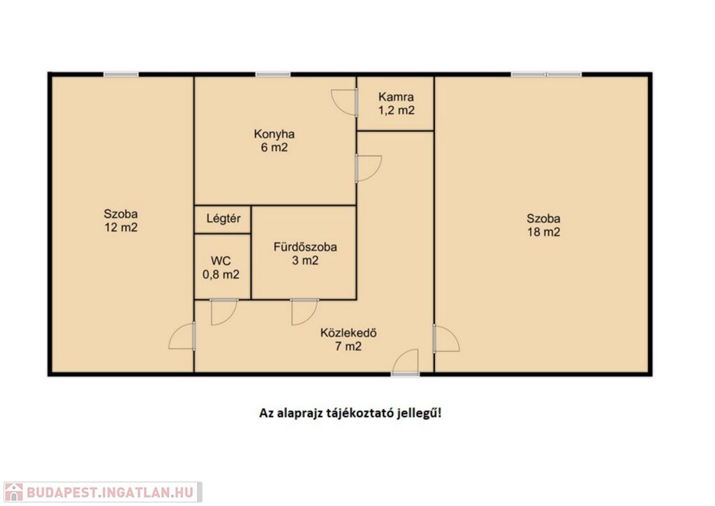 Az ingatlan belső elosztása: közlekedő, 2 szoba, konyha, fürdőszoba, Wc.