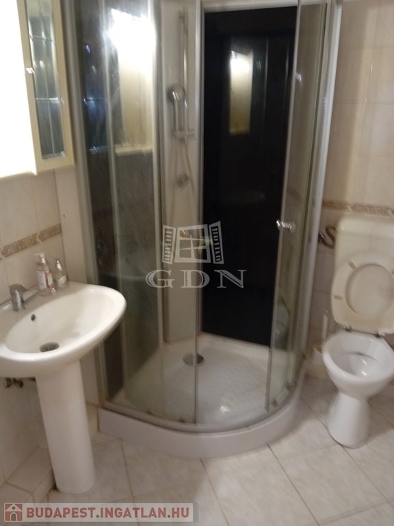 Helytakarékos megoldással a fürdőben zuhanykabin került beépítésre, növelve így a tér és komfort érzetet.