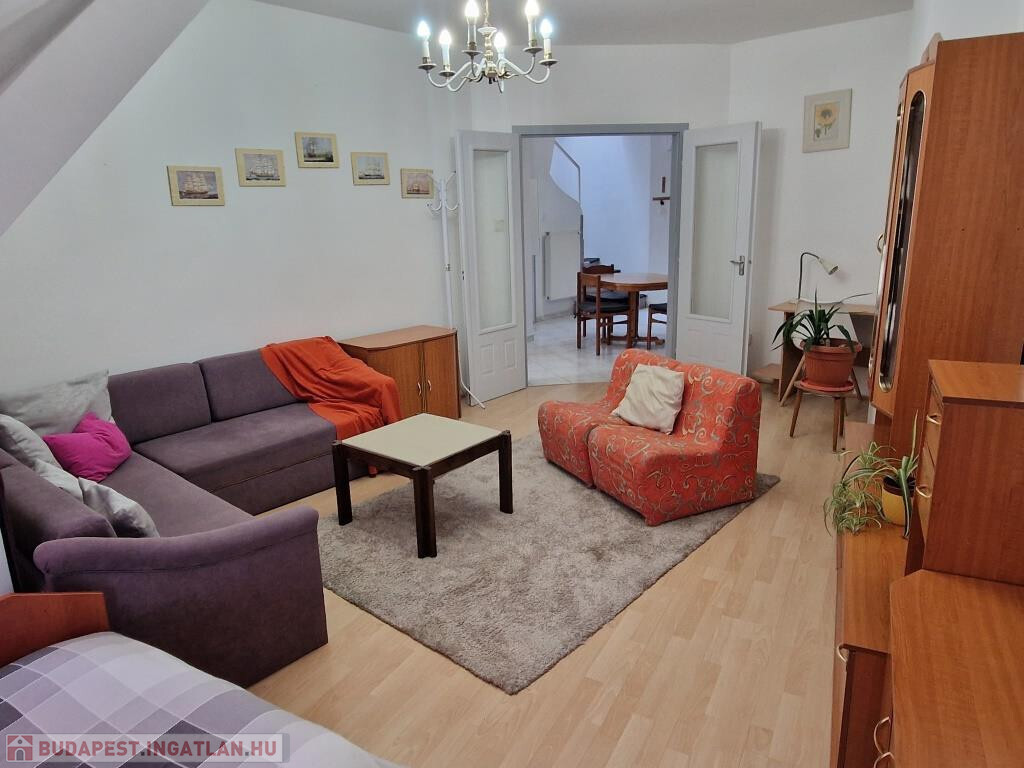 Kaposvár belvárosában, a Teleki utcában kínáljuk bérbevételre ezt a belső kétszintes, 1 + 3 félszobás lakást. Alapterülete 87 m2, a társasház harmadik emeletén helyezkedik el. Alsó szintjén a tágas előtér étkezőként is szolgál, innen nyílik a konyha, a nagyobb méretű nappali szoba, az egyik félszoba, egy zuhanyzós fürdő, valamint egy kis kamra. Innen vezet fel a lépcső a felső szintre, ahol találunk még egy fürdőt sarokkáddal, és két kisebb hálószobát. A lakás tágas, világos, barátságos, elrendezése praktikus. Fűtése saját gázkazánnal megoldott, és légkondi berendezés is van. A lakás a képeken látható bútorzattal és háztartási gépekkel együtt kiadó. Van lehetőség garázst is bérelni, ennek ára plusz 25 EFt havonta. Nemdohányzó bérlőt keresünk hosszabb távra, legalább egy évre, aki a kéthavi bérleti díjnak megfelelő összegű kaució és az első havi bérleti díj kifizetése után beköltözhet. Dohányzás és állattartás tilos.
