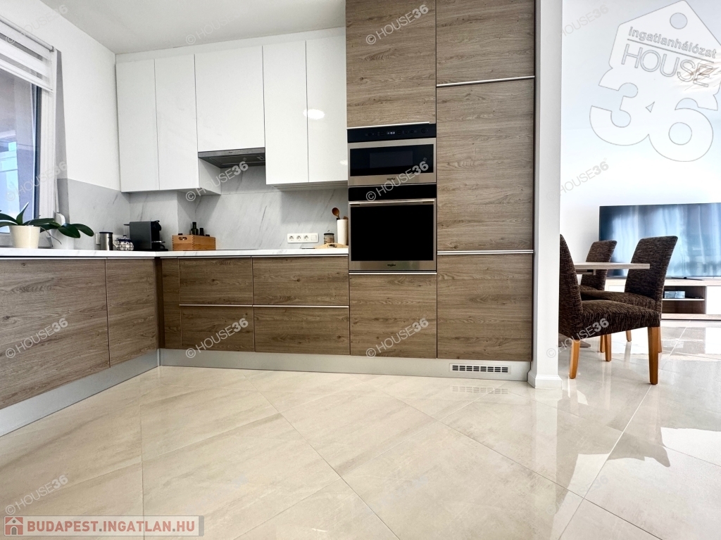 A lakásban padlófűtés és mennyezethűtés lett kiépítve, azonnal költözhető.