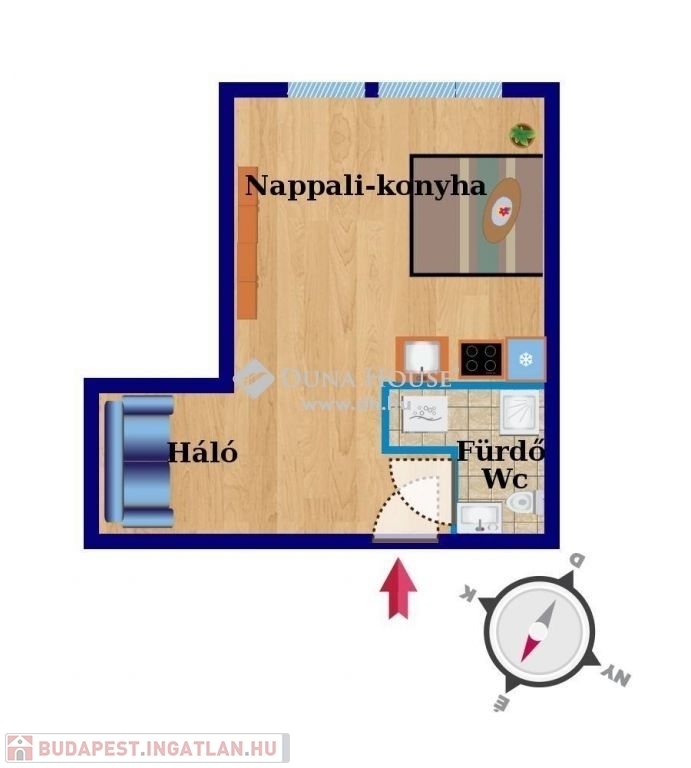 Amerikai-konyha-nappali +hálórész, +tusolóval rendelkező fürdő biztosítja a mindennapok kényelmét.