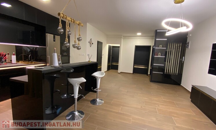 A lakás teljes körűen bútorozott, minőségi Bosch gépesítéssel felszerelt (mosogatógép, mosó-szárítógép).