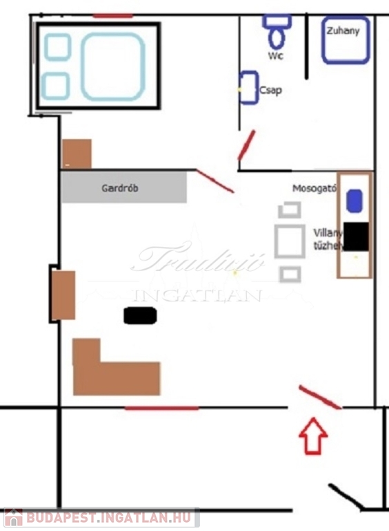 Bérleti díj: 120.000 Ft/ hó + rezsi. (Wifi, korlátlan internet, Tv)