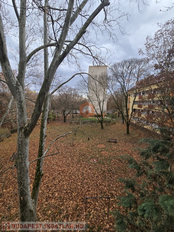 A loggiáról zöld, nyugodt parkra nyílik kilátás.