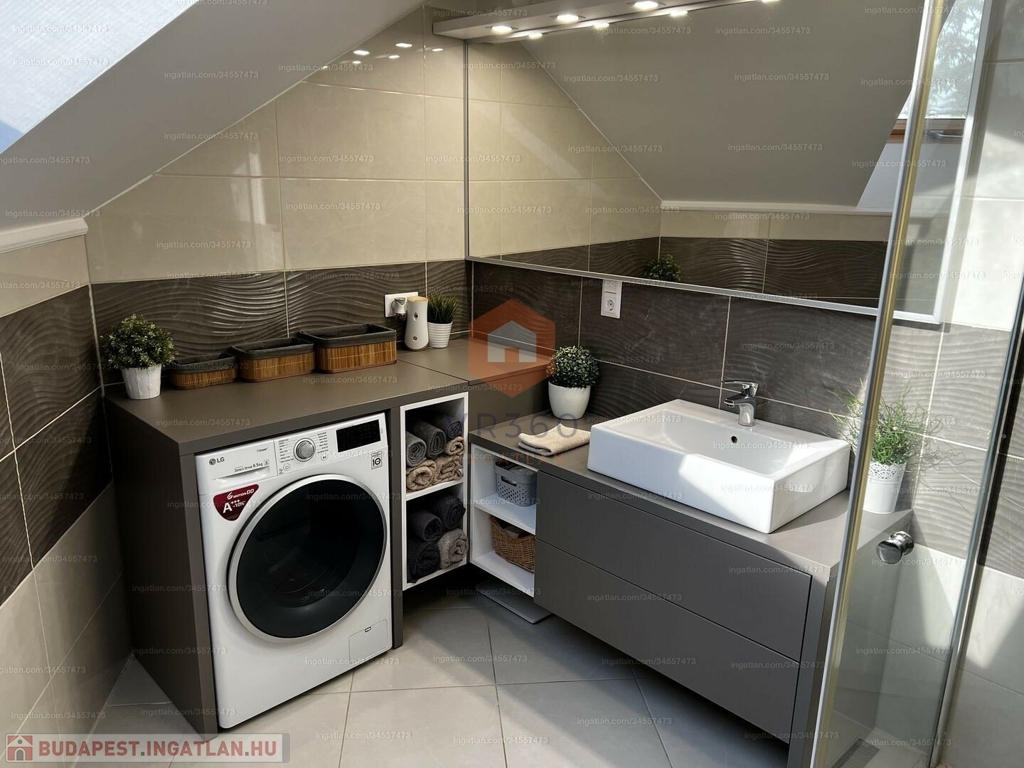 Minden berendezés prémium minőségű – egyedileg gyártott ülőgarnitúra, modern fürdőszoba üveglapos Geberit WC-vel
