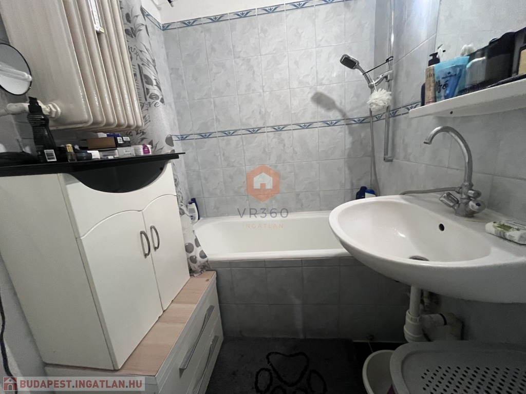 Külön helységben található a fürdő és WC. A lakás teljes berendezéssel konyhaeszközökkel van felszerelve