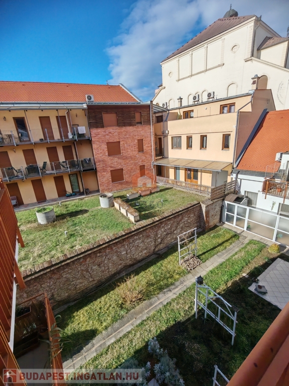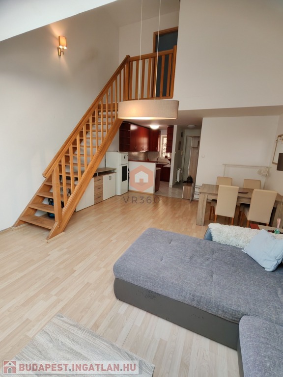 Pécs belvárosának központi részén kiadó egy 70 nm-es, belső kétszintes klímás lakás, egy 2 emeletes tégla társasház 2. emeletén.