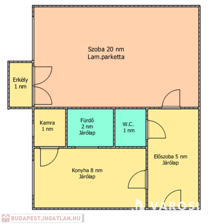 A lakásban 1 szoba, konyha, előszoba, fürdőszoba, külön nyíló W.C., erkély található.