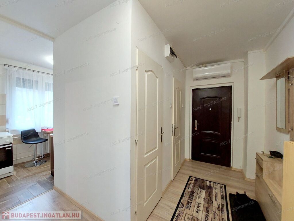 A lakás két külön bejáratú szobával rendelkezik, laminált padlóburkolattal és festett falakkal. Az ingatlan igényesen berendezett, az új bérlőnek csak költöznie kell.