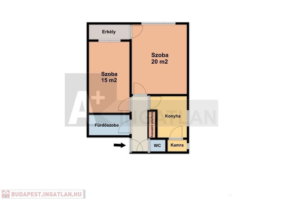 A 2 szoba praktikusan külön bejáratú, ezért 2 egyetemista részére is tökéletes választás.