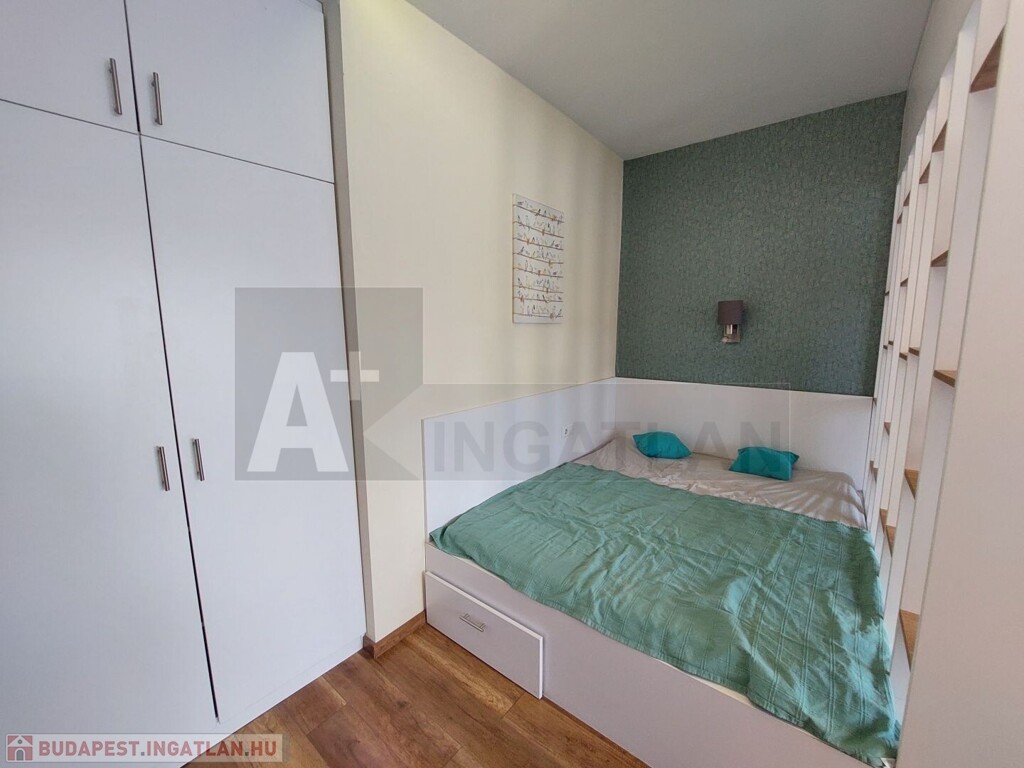 Berendezett és felszerelt lakás, sok pakolós beépített szerkénnyel.