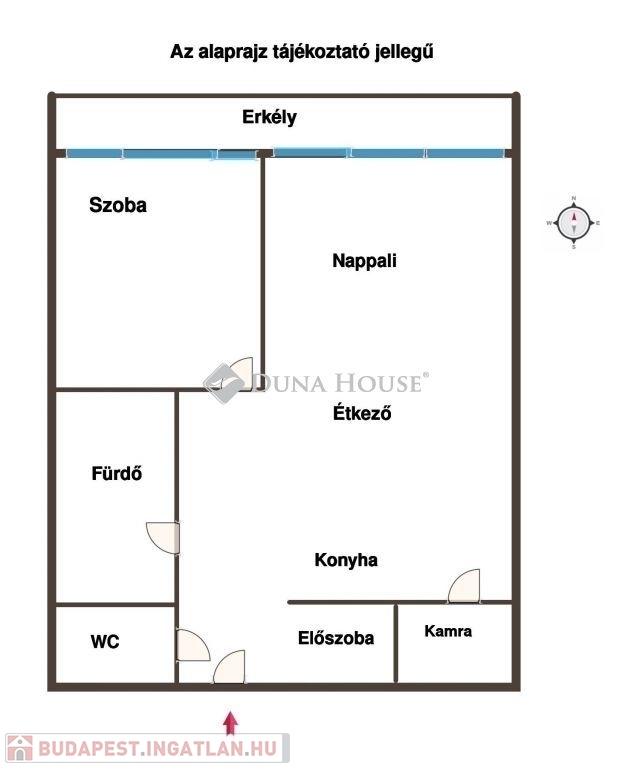 Elrendezés: tágas, világos nappali étkezővel és amerikai konyhával, külön nyíló hálószoba, fürdő és WC külön helyiségben