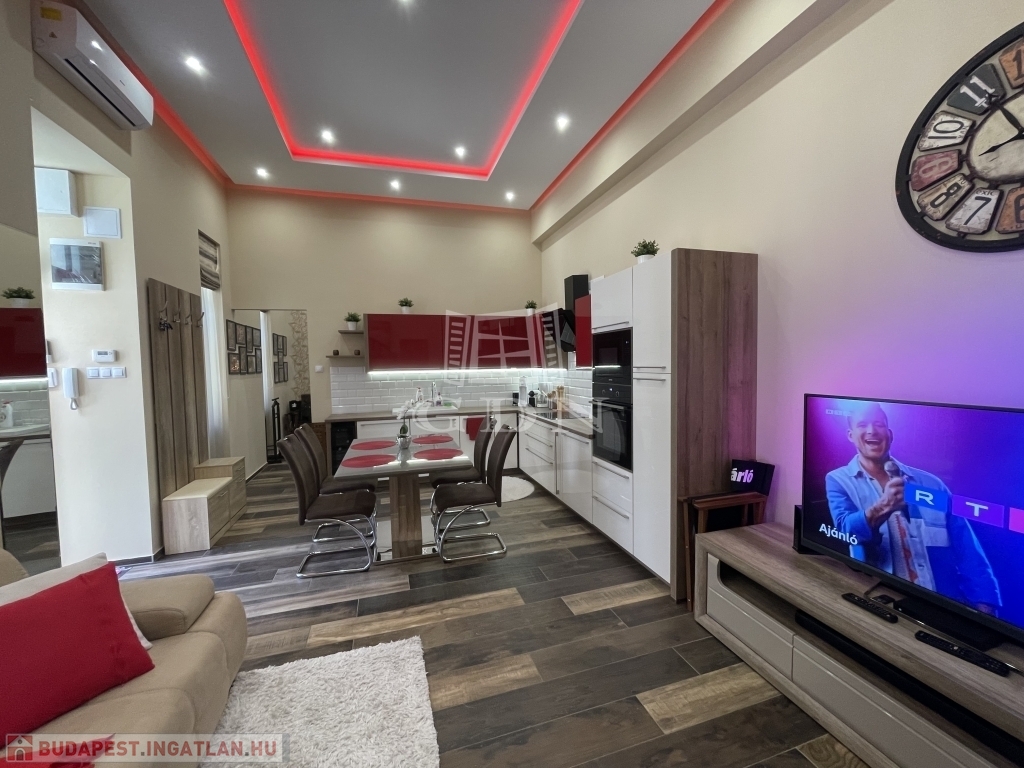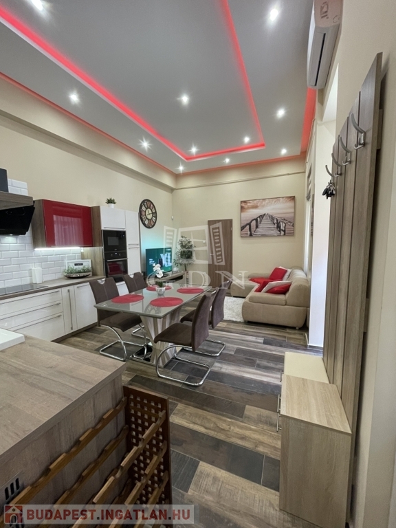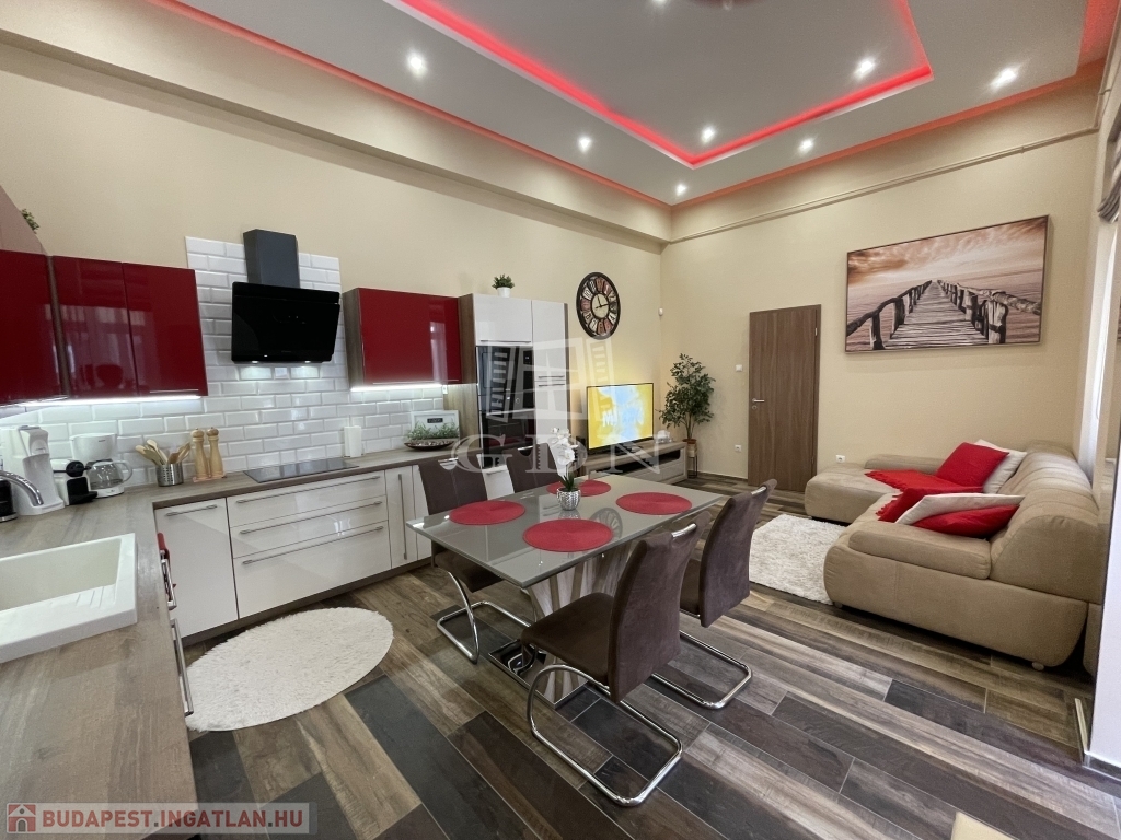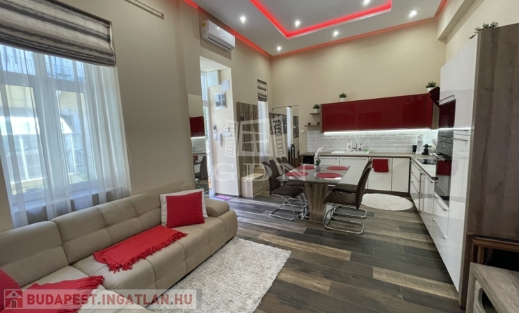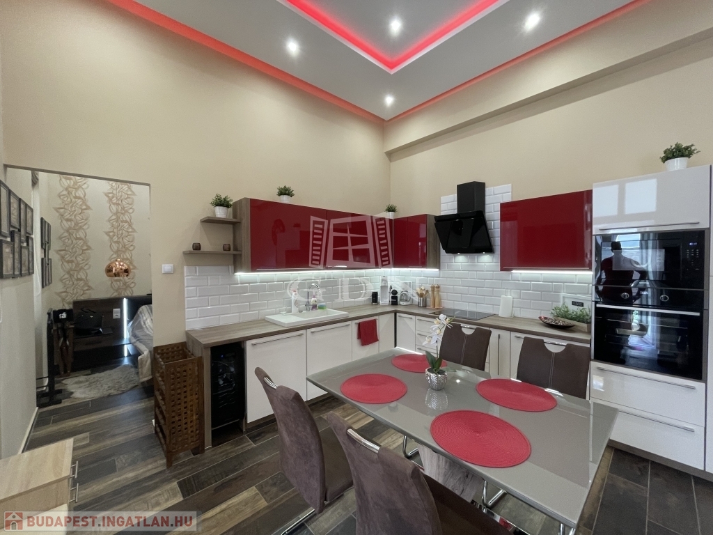 A lakás magas minőségű bútorokkal van berendezve, a konyha extrán gépesítve: borhűtő, beépített mosó-száritógép, hűtőszekrény, mosogatógép, indukciós főzőlap, villany sütő, mikró, páraelszívó.