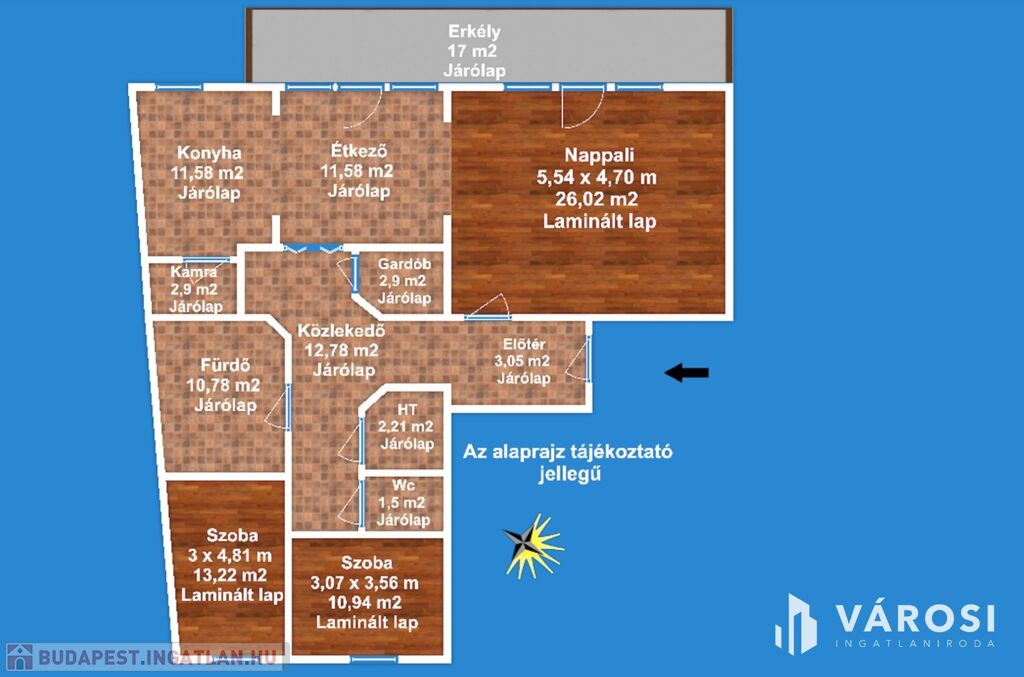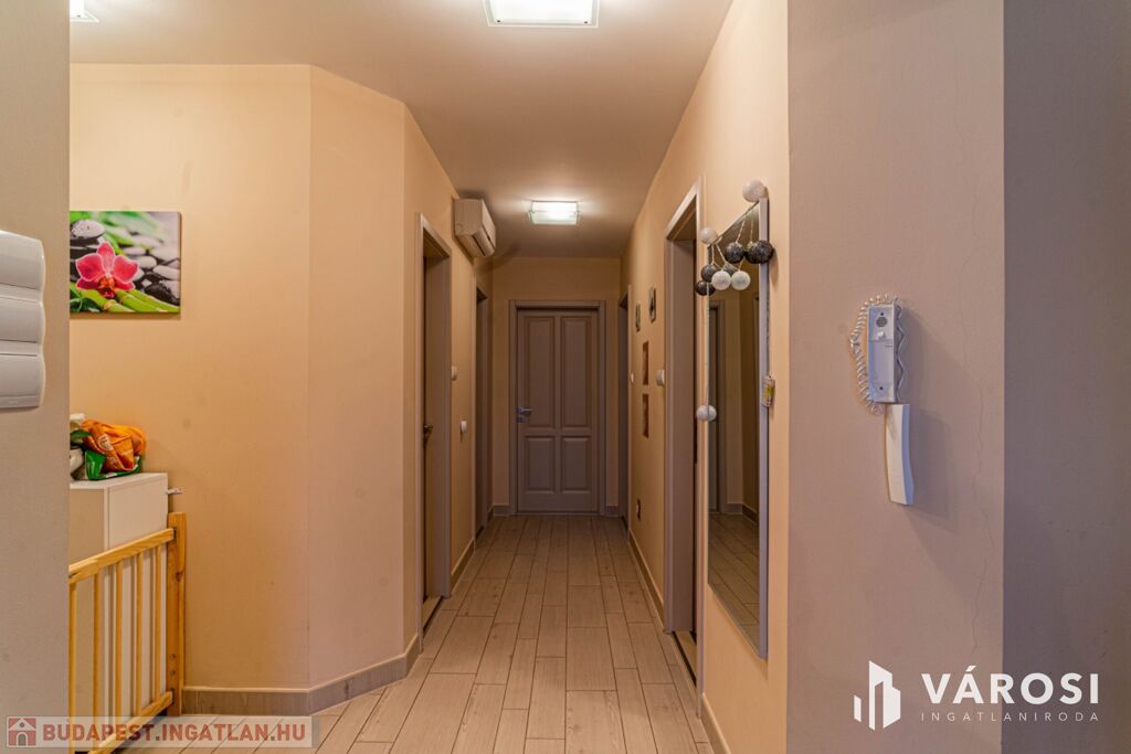 A lakás kifogástalan állapotú, jó átgondolt terekkel rendelkezik, és kapott még külön gardróbot, és háztartási helységet is, ezen felül fürdőben sarokkád és tusoló is található.