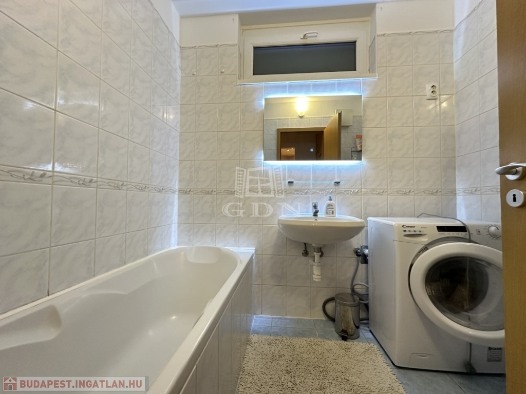 A wc és a kádas fürdő egy helyiségben kapott helyet. A fűtés központi, egyedi mérőórákkal. A lakás rezsi költsége rendkívül kedvező, a közös költség 14.650 Ft havonta. Parkolni az épület aljában található teremgarázsban lehet havi 20.000 Ft + 2415 Ft áron, ahonnan a lifttel tudunk a lakáshoz feljutni. Az épület előtt ingyenes a parkolás.