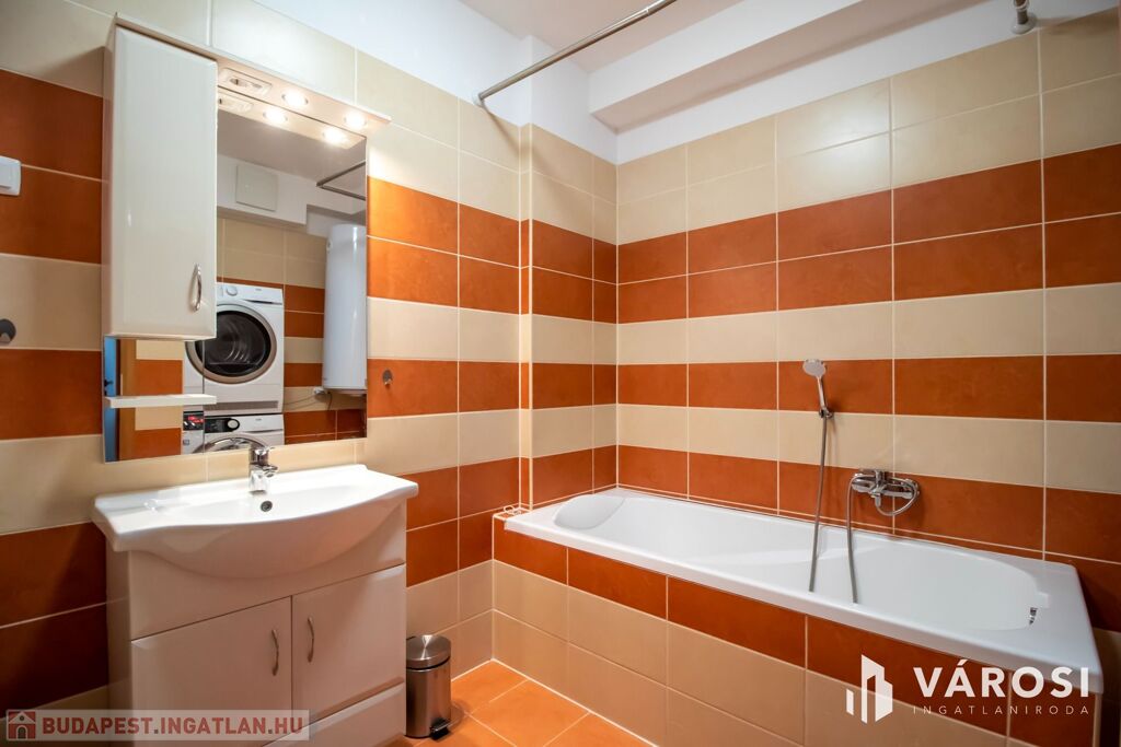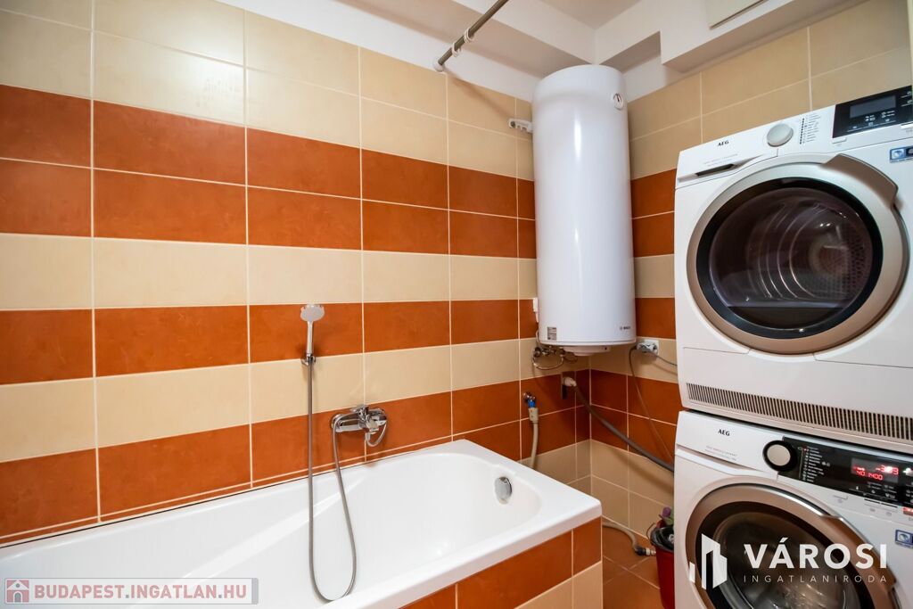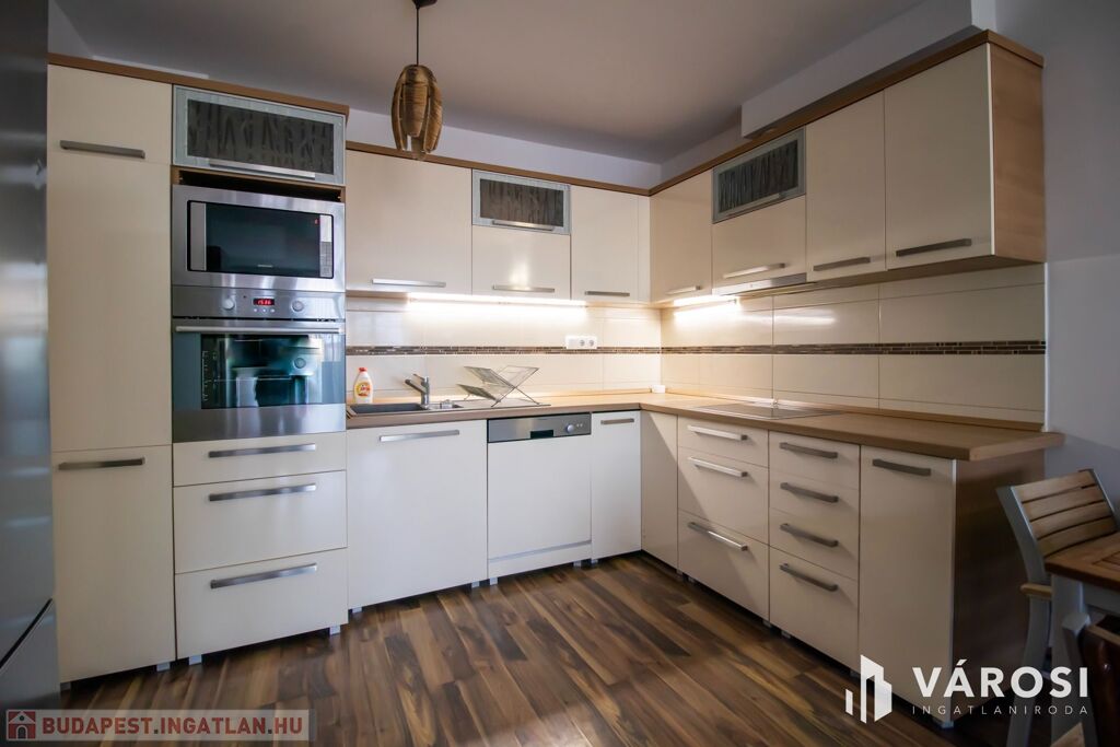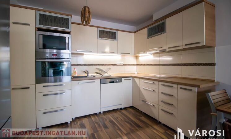 A lakásban a konyha gépesített, mosogatógéppel, mikróval és hűtőszekrénnyel is rendelkezik. A lakás a képeken látható bútorokkal kiadó. A szobákban és az előszobában is egy-egy beépített gardrób nyújt lehetőséget a tárolásra. A fürdőszobában mosó és szárítógép is található.