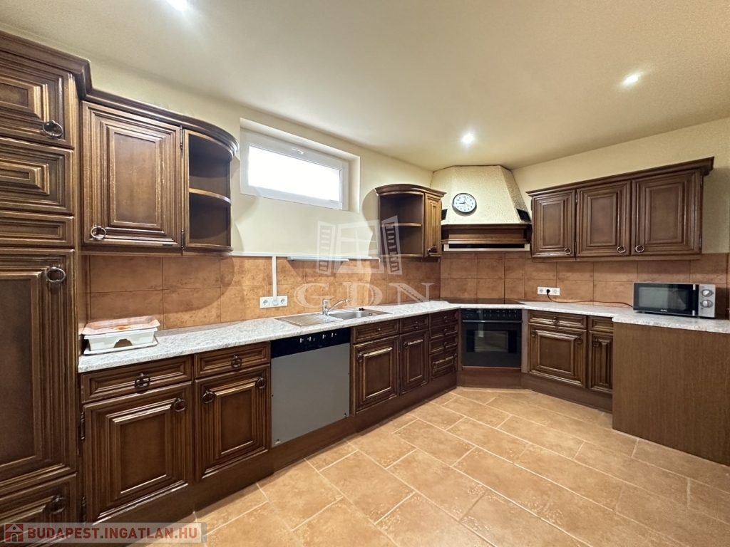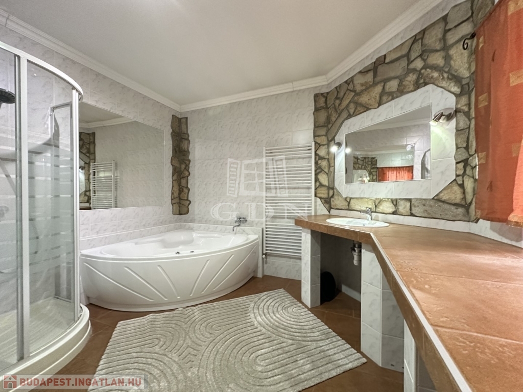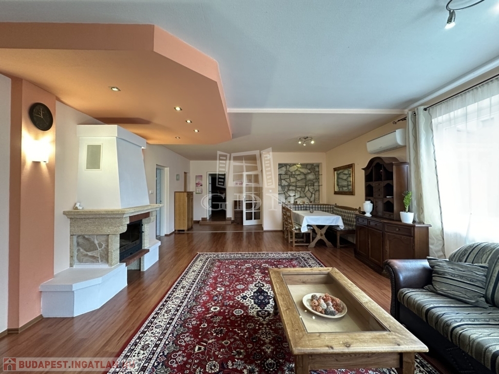 A fűtésről gázkazán gondoskodik, a hőleadás radiátorokon keresztül megoldott. Alternatív fűtésként fatüzelésű kandalló is használható a nappaliban. Nyáron a kellemes hőmérsékletről, klíma gondoskodik. A nappaliból biztosított a kijutás a télikertbe. A szobák és a nappali burkolata laminált padló, a többi helység járólappal burkolt. A lakáshoz, saját használatú 32 nm-es terasz is tartozik.