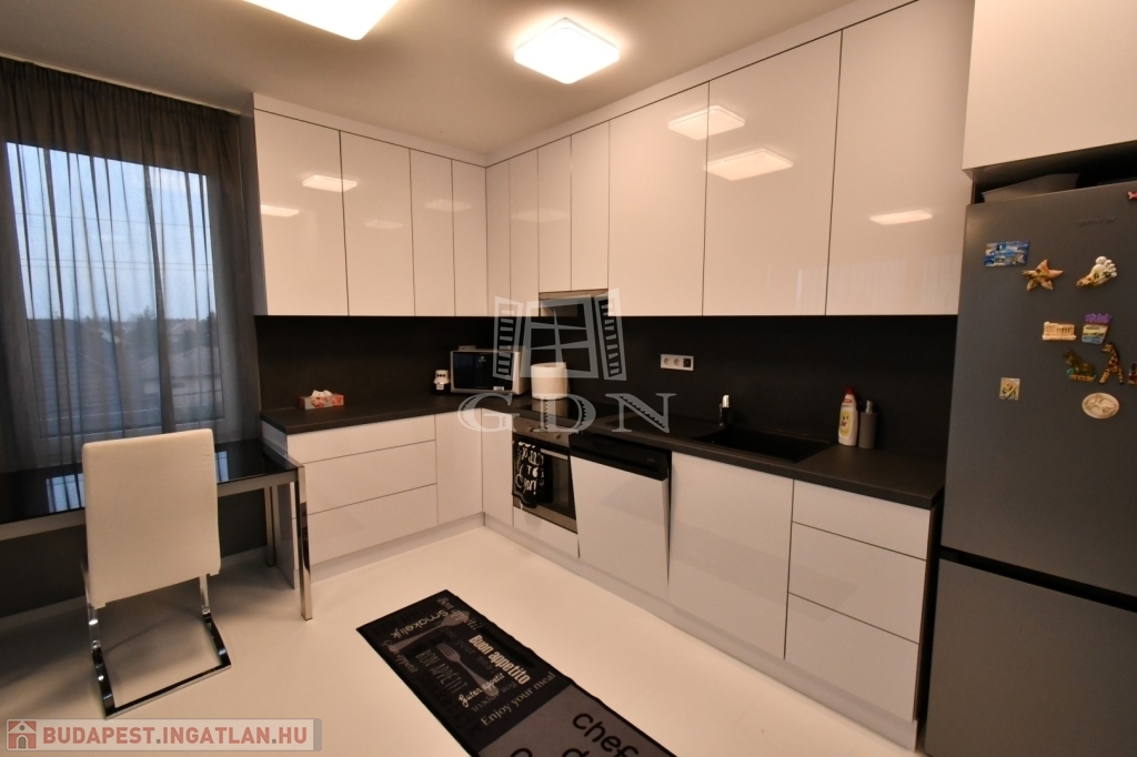 A szobák laminált padlóval, egyéb helyiségei új járólappal burkoltak, a falak festettek. A fűtésről és a használati meleg vízről a ház saját kazánja gondoskodik, egyedi méréssel, és a padlón keresztüli hőleadással.