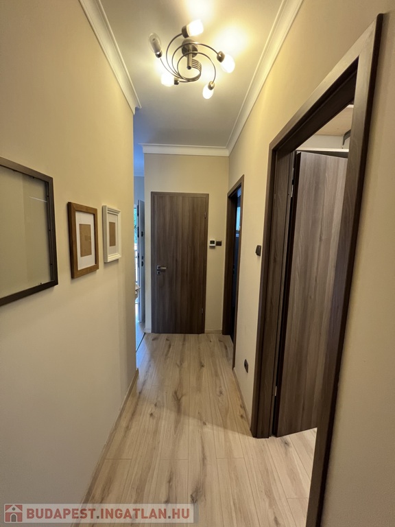 Az ingatlan kiváló elosztású: külön konyha, nappali, hálószoba, gardrób, valamint külön fürdő és WC került kialakításra. A nappaliból franciaerkély, a bejárat elől pedig saját terasz nyílik.