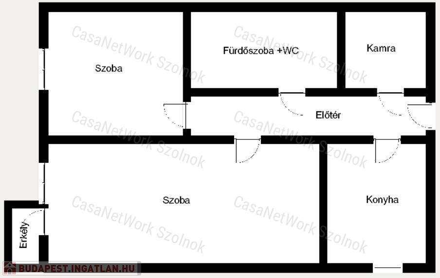- rendelkezésre álló helyiségek: két szoba, konyha, fürdőszoba + WC, előtér, kamra, erkély,