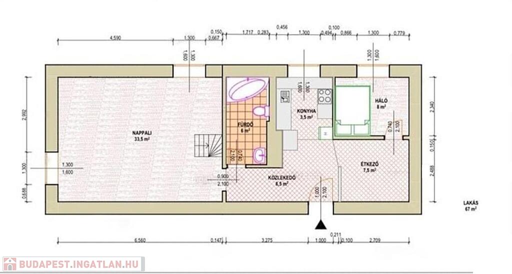 • 33,5 m²-es nappali étkezőrésszel, a lakás központi élettere