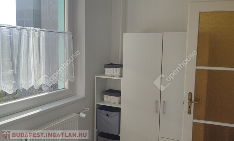 Az ingatlan részben bútorozva kerül kiadásra. A nappaliban egy szekrénysor, és egy nagy méretű kanapé, és egy étkezőasztal szélekkel biztosítja a kényelmet. A fél szoba, akár hálóként is funkcionálhat, egy ruhás szekrény áll rendelkezésre. A konyhabútor tűzhellyel, és tároló felületekkel segíti lakóját. A nyílászárók korszerű műanyag szerkezetűek, a bejárat fém bizonsági ajtóval rendelkezik.