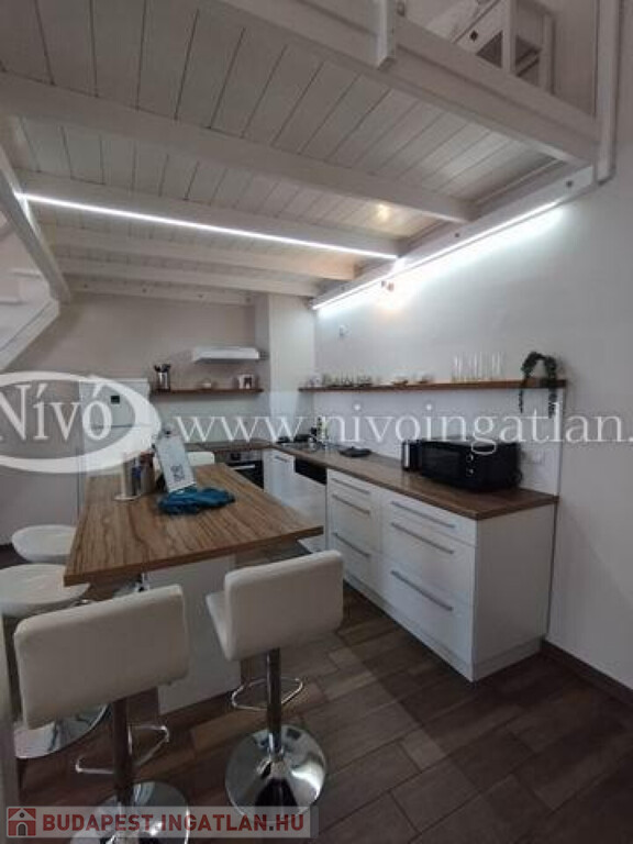 Az ingatlan áll egy előszobából, egy polgári méretekkel ellátott, nagy méretű világos, tágas konyha-nappali-étkezőből, egy galériából, egy hálószobából, egy gardróbból (egy félszobából), egy zuhanyzós fürdőszobából, egy külön WC-ből, illetve egy háztartási helyiségből/mosókonyhából (víz be van vezetve).