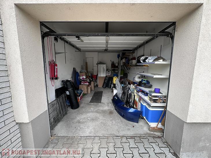 A garázsban a villamoshálózat ezáltal világítás és fűtés is elérhető, a behajtást elektromos garázsajtó segíti.