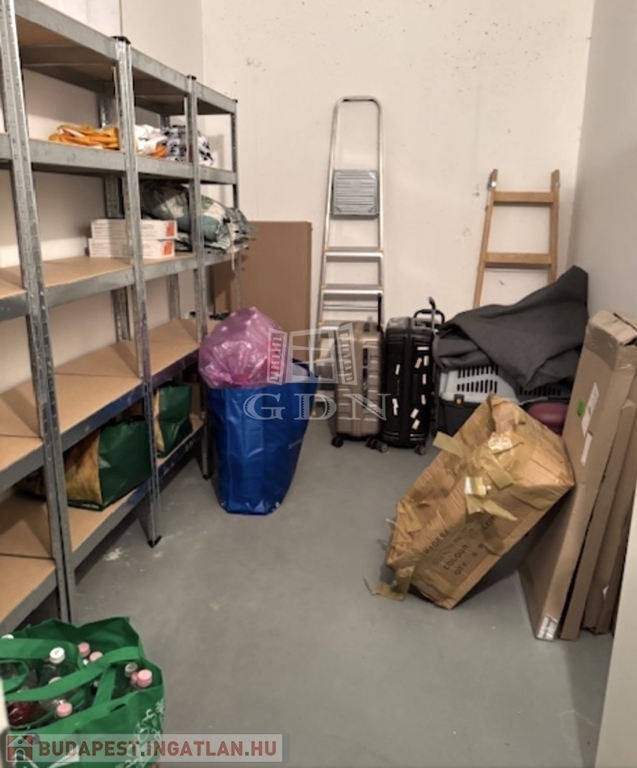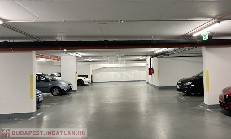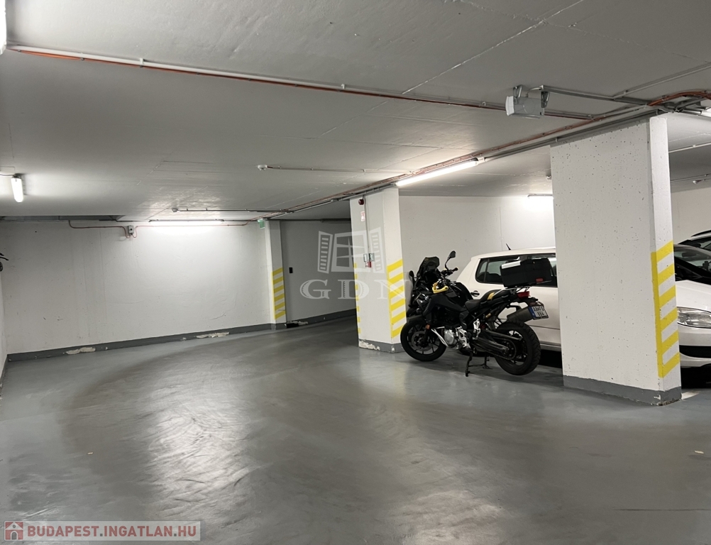 Eladó Budapest IX. kerület Rehabilitációs területen Márton utcai újszerű társasház teremgarázsában egy 12 négyzetméteres gépkocsibeálló 9 négyzetméteres garázsból nyíló, kulcsra zárható tárolóval.