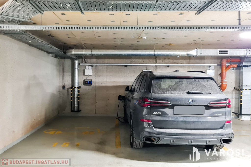 Eladó a 13. kerület megújult részén, a Szabolcs utcában, a Park West társasházban egy elektromos autó töltésére alkalmas parkolóhely.