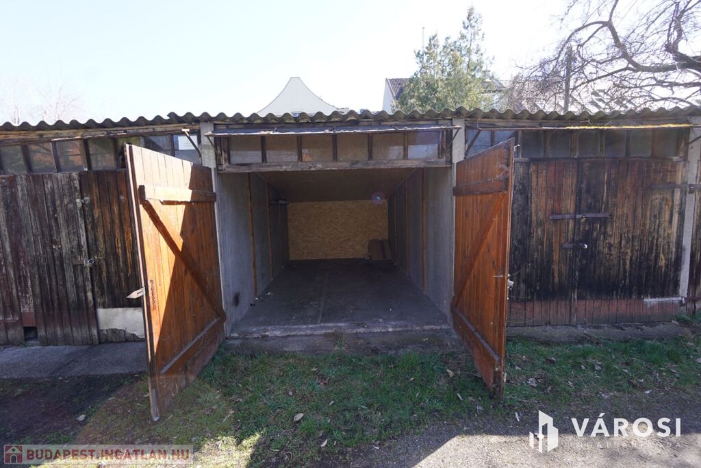 A garázs együtt épült a mellette helyet foglaló többi garázzsal önkormányzati területen. A telek bejárati kapuja zárható!