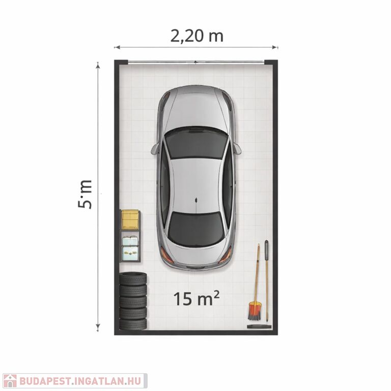 Az ingatlan 15 m² alapterületű, így tökéletes választás mind autó tárolására, mind kisebb tárolási igények kielégítésére.