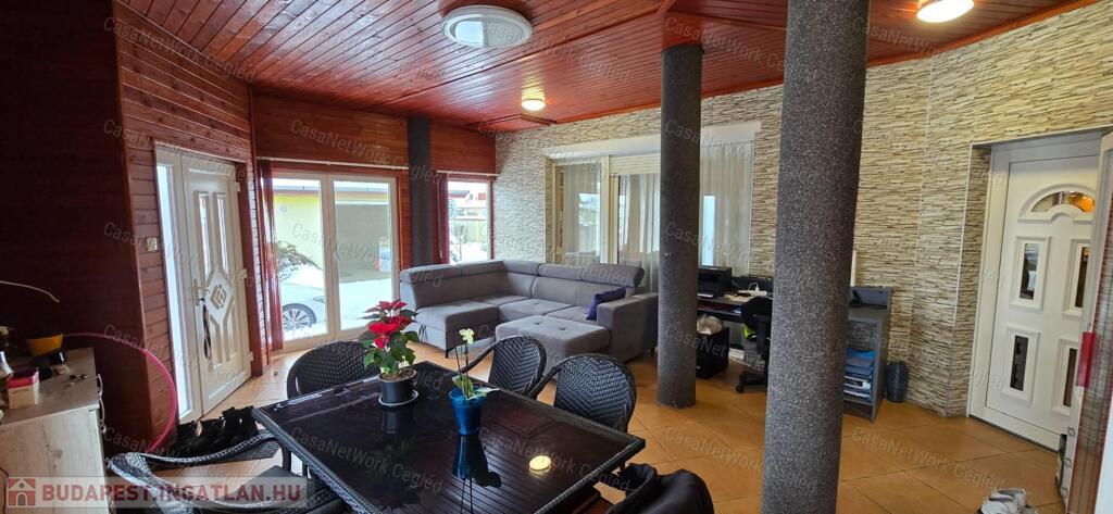 Eladó Abonyban, egy csendes zsákutcában található igényes családi ház, amely kiváló lehetőséget kínál lakhatásra és vállalkozásra egyaránt. A 752 m²-es telken elhelyezkedő, 103 m² alapterületű, 2003-ban épült, földszintes tégla családi ház külső falai 10 cm vastag hőszigeteléssel ellátottak, a padlás szigetelt. Az ingatlan fűtését kondenzációs gázkazán biztosítja, műanyag nyílászárókkal rendelkezik, melyek redőnnyel felszereltek, valamint klíma is beépítésre került. A belső berendezés nagy része a vételár részét képezi. A ház belső elosztása tágas: 30 m²-es előszoba, 16,8 m²-es és 13,53 m²-es szobák, egy világos, 30 m²-es amerikai konyhás nappali, 6,6 m²-es kamra és egy 6 m²-es fürdőszoba biztosítja a kényelmes mindennapokat. Az udvaron három gépkocsi számára fedett beállási lehetőség található. A ház mellett egy különálló, kétszintes épület helyezkedik el, melynek alsó szintjén egy jelenleg is működő, 38,9 m²-es szépségszalon található, amelynek fűtése konvektorral és klímával megoldott. A szalon mögött kapott helyet egy 26,4 m²-es garázs, ahol ipari áram is rendelkezésre áll. Az emeleti szintre külső fém lépcső vezet, itt két szoba található 21,6 m² és 22,1 m² alapterülettel, továbbá egy 6,5 m²-es konyha és egy 3,8 m²-es fürdőszoba, a fűtés ezen a szinten is konvektorral és klímával történik. Az udvar rendezett, nagy része térkövezett, kialakításra került sütögető, kondicionáló tér, kerti bútorok, valamint fúrt kút is rendelkezésre áll, amely tovább növeli az ingatlan komfortját és értékét.