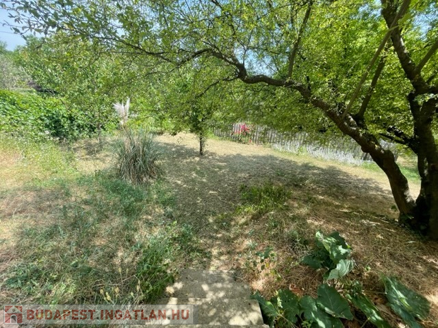 A ház 1397 m2 telken áll, amelynek utcafronti szélessége 38 m, enyhén lejtős terület, kissé trapéz alakú. A kertben számos termő gyümölcsfa, veteményes és dísznövények mellett egy 8 m2-es hőszigetelt (10 cm) faházikó is elhelyezésre került. A gazdaságos öntözést egy 8 m3-es földalatti esővízgyűjtő ciszterna biztosítja.