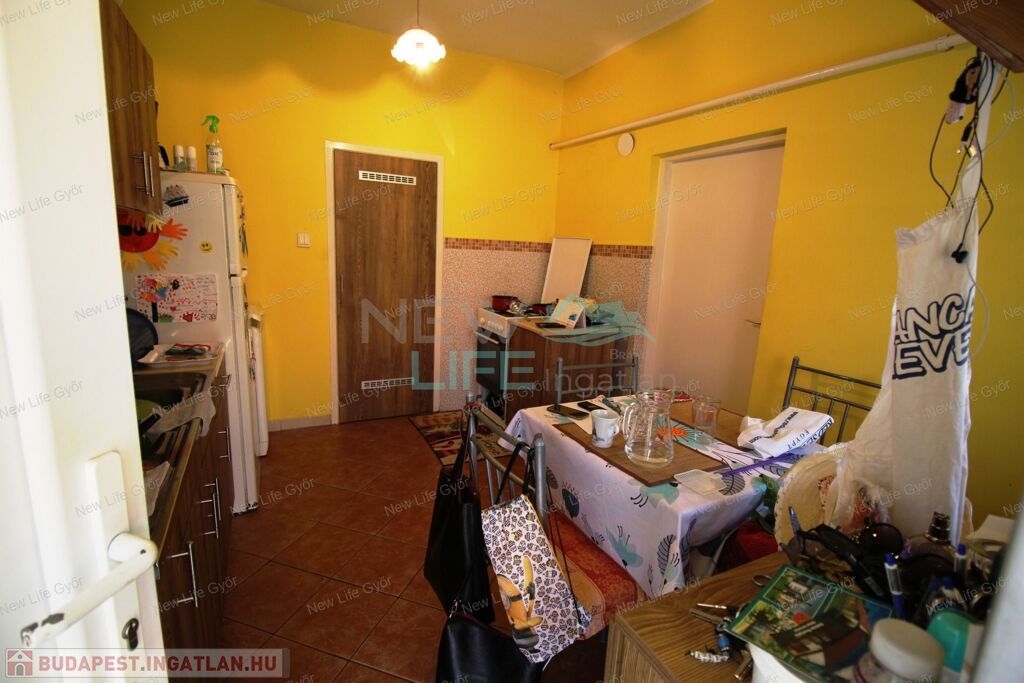 -második lakás: 46nm-es, étkező-konyha, fürdő, két szoba. Mivel ez két bejárattal is rendelkezik, az egyiket akár kisvállalkozás üzemeltetésére is használható (Pl. iroda, fodrászat, műkörmös, vagy masszázs szalon).
