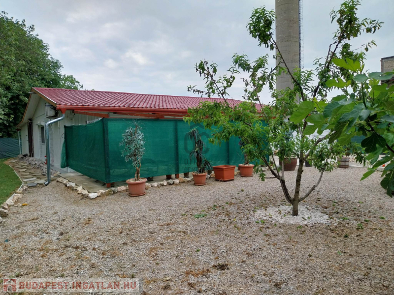 A murvás úton, fák és virágok között egy könnyűszerkezetes, speciális, német szigetelőannyaggal bevont házhoz érünk. Pillantásunkat sem tudjuk levenni róla, ahogy az elkerített terasz mögött ez a műanyag nyílászárókkal ellátott ingatlan elénk tárul. Amennyiben mégis elkalandozik a szemünk balra, láthatjuk, hogy a széles utcafront magas kerítésén belül, az udvarban egy bárpult grillezővel, asztalokkal, fedetten tárul elénk.